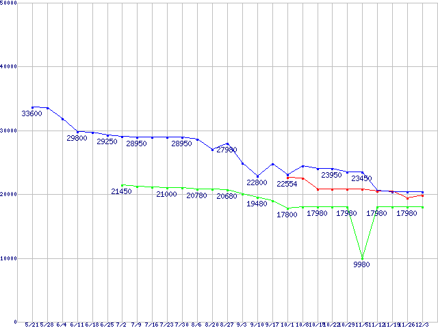 | Socket AM3 (HyperTransport 3.0,6Core)の最安値推移 |