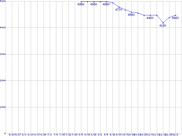 | TRAVELSTAR (5400rpm,3Gb/s,2.5インチ)の最安値推移 |