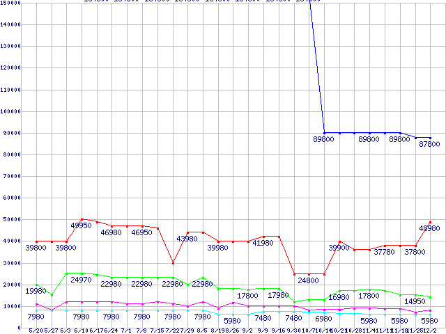 | ※製品名をクリックすると個別のグラフを表示します ※点線部は販売店が確認できなかった、または調査データがないことを示します | |