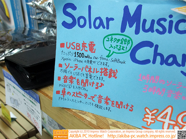 太陽光で1時間充電、再生3時間の音楽プレイヤーが販売中