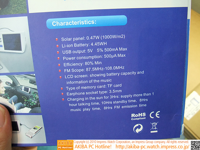太陽光で1時間充電、再生3時間の音楽プレイヤーが販売中