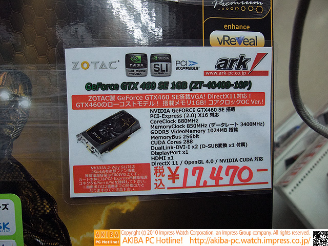AKIBA PC Hotline! 2010年12月4日号今週見つけた新製品:ビデオカード [拡大画像]ZOTAC GeForce GTX 460 SE(ZT-40409-10P)[記事に戻る]→次の画像