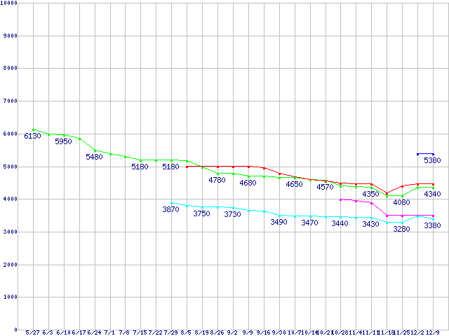 | ※製品名をクリックすると個別のグラフを表示します ※点線部は販売店が確認できなかった、または調査データがないことを示します | |