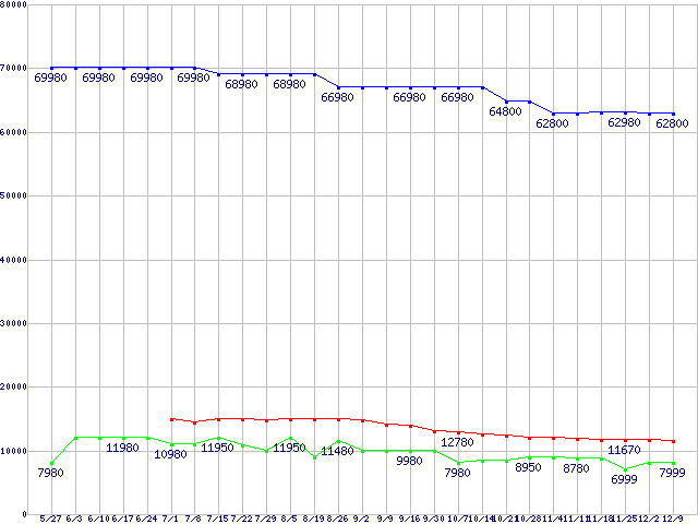 | HDD/SSD 60GB〜80GB未満の最安値推移 |