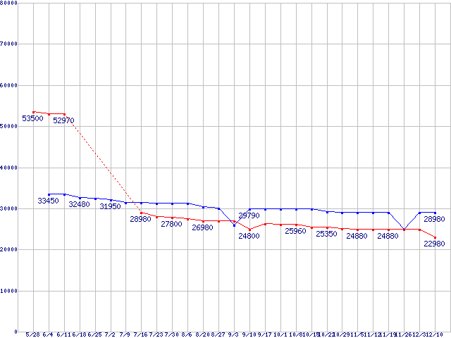| LGA1156 (L3キャッシュ8MB,Quad Core,Hyper-Threading,TDP 82〜95W)の最安値推移 |