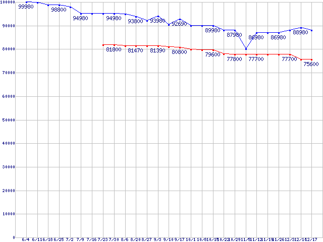 | CPU主要製品(最安値6万円以上)の最安値推移 |
