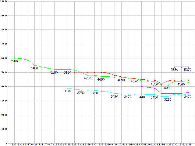 | ※製品名をクリックすると個別のグラフを表示します ※点線部は販売店が確認できなかった、または調査データがないことを示します | |