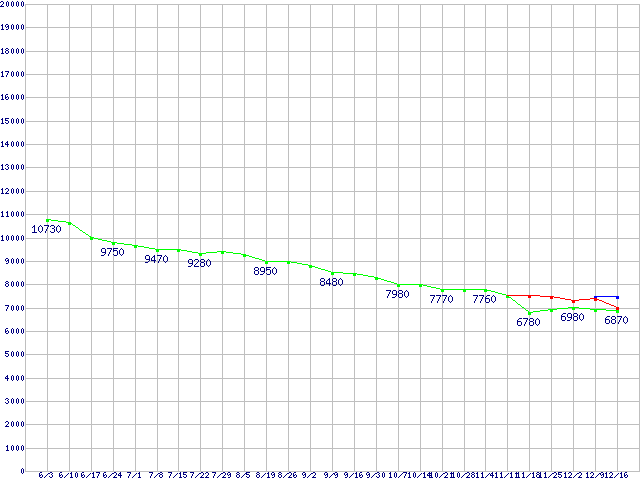 | HDD 750GB〜1TB未満の最安値推移 |