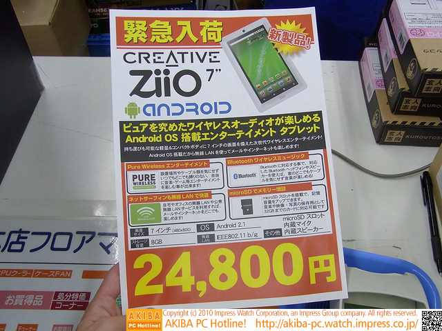 AKIBA PC Hotline! 2010年12月18日号[拡大画像]音質重視のAndroidタブレット登場、Creative製今週見つけた新製品:スマートフォン/タブレット端末 Creative ZiiO 7"前の画像←[記事に戻る]