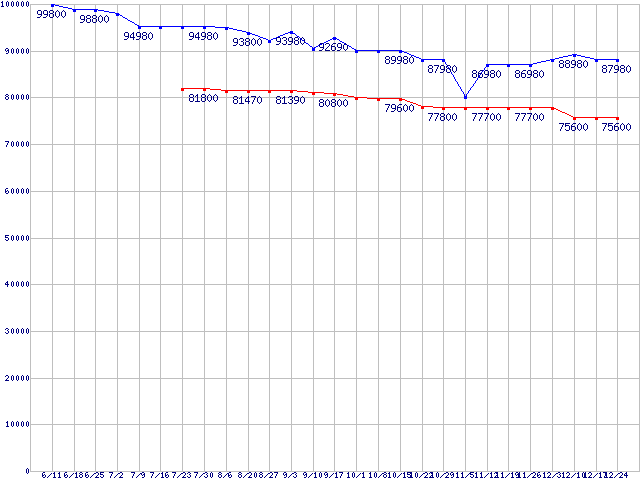 | CPU主要製品(最安値6万円以上)の最安値推移 |