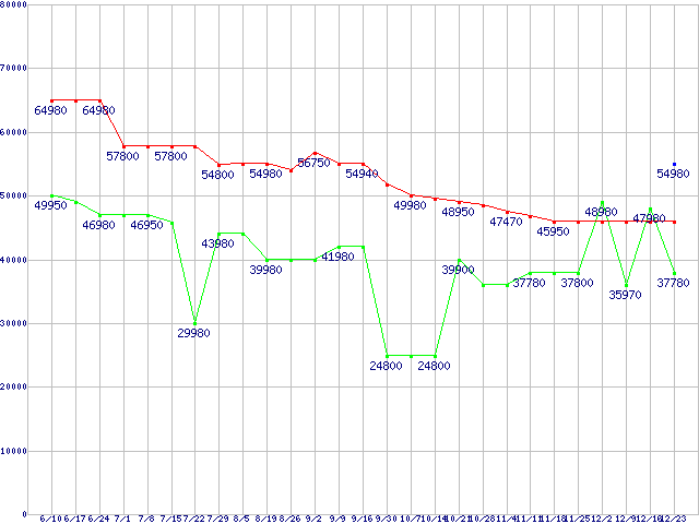 | ※製品名をクリックすると個別のグラフを表示します ※点線部は販売店が確認できなかった、または調査データがないことを示します | |