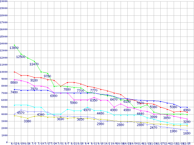 | ※製品名をクリックすると個別のグラフを表示します ※点線部は販売店が確認できなかった、または調査データがないことを示します | |