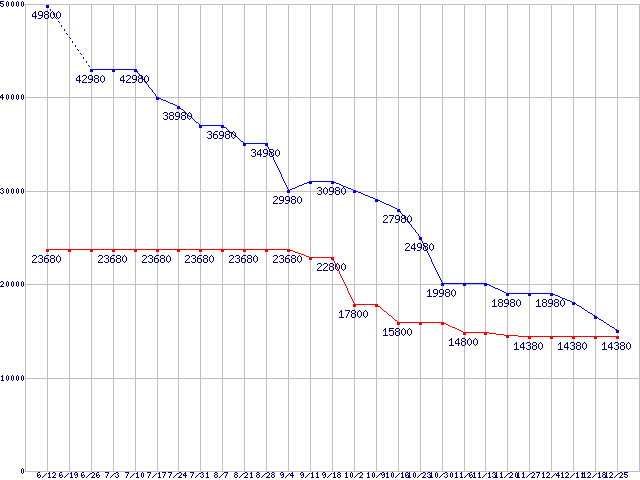 | メモリ主要製品(最安値1万円以上)の最安値推移 |