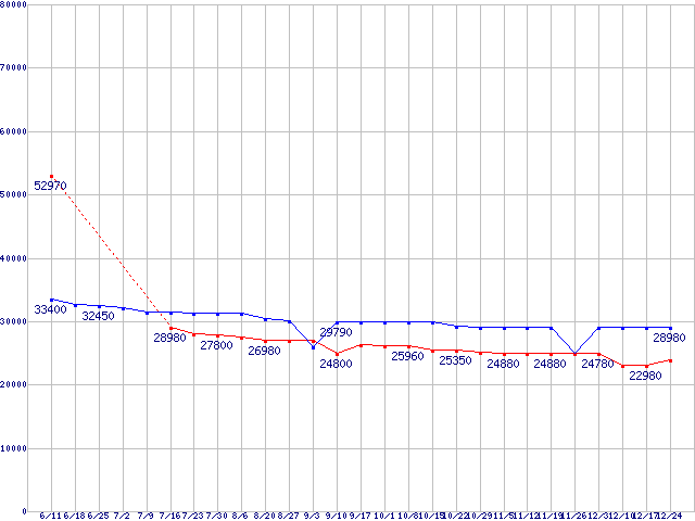| LGA1156 (L3キャッシュ8MB,Quad Core,Hyper-Threading,TDP 82〜95W)の最安値推移 |