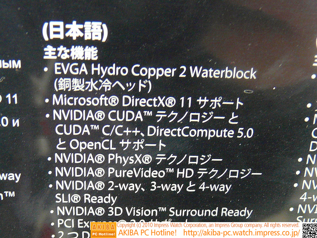 ![]() | AKIBA PC Hotline! 2010年12月25日号 [拡大画像]水冷のGTX 580が発売に、1スロット仕様 今週見つけた新製品:ビデオカード EVGA GeForce GTX 580 FTW Hydro Copper 2(015-P3-1589-KR) |