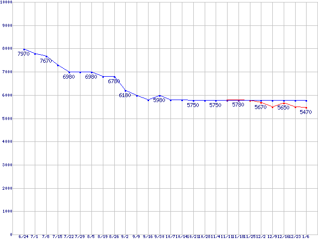 | ※製品名をクリックすると個別のグラフを表示します ※点線部は販売店が確認できなかった、または調査データがないことを示します |