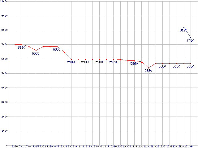 | ※製品名をクリックすると個別のグラフを表示します ※点線部は販売店が確認できなかった、または調査データがないことを示します |