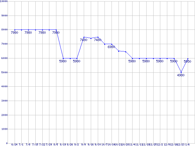 | ※製品名をクリックすると個別のグラフを表示します ※点線部は販売店が確認できなかった、または調査データがないことを示します |