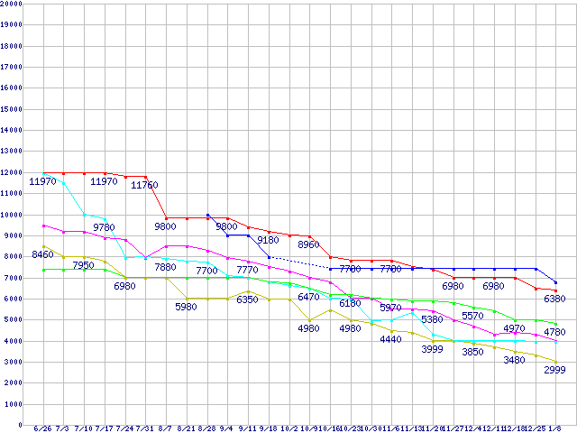 | ※製品名をクリックすると個別のグラフを表示します ※点線部は販売店が確認できなかった、または調査データがないことを示します | |
