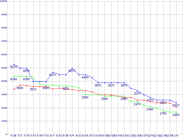| ※製品名をクリックすると個別のグラフを表示します ※点線部は販売店が確認できなかった、または調査データがないことを示します | |
