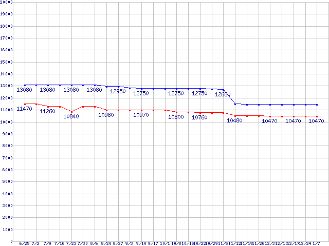 | LGA775 (FSB 1066MHz,Dual Core,TDP 65W)の最安値推移 |