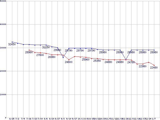 | LGA1156 (L3キャッシュ8MB,Quad Core,Hyper-Threading,TDP 82〜95W)の最安値推移 |