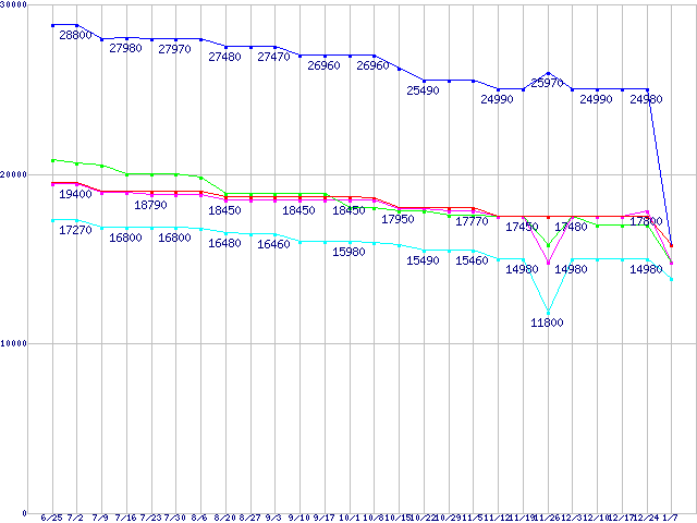 | ※製品名をクリックすると個別のグラフを表示します ※点線部は販売店が確認できなかった、または調査データがないことを示します | |