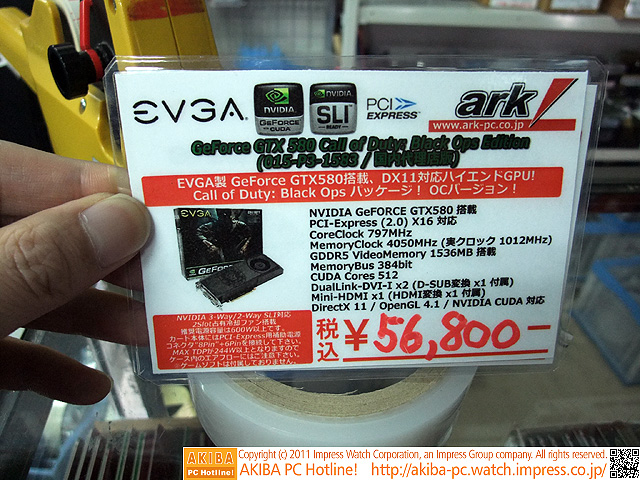 AKIBA PC Hotline! 2011年1月8日号今週見つけた新製品:ビデオカード [拡大画像]EVGA GeForce GTX 580 Call of Duty: Black Ops Edition前の画像←[記事に戻る]