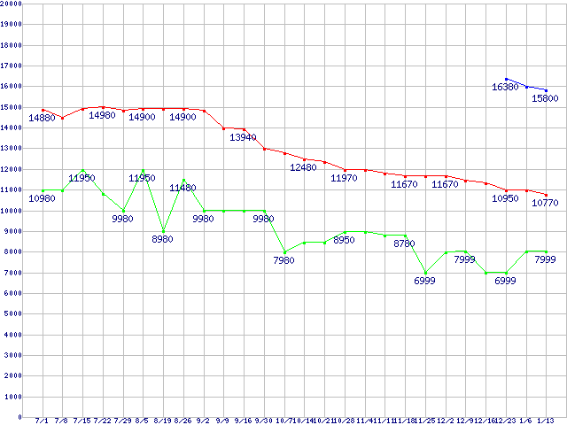 | ※製品名をクリックすると個別のグラフを表示します ※点線部は販売店が確認できなかった、または調査データがないことを示します | |