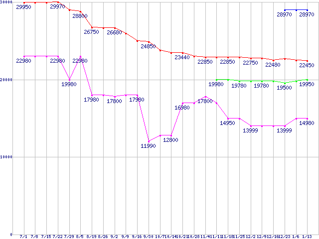 | HDD 100〜160GB未満の最安値推移 |