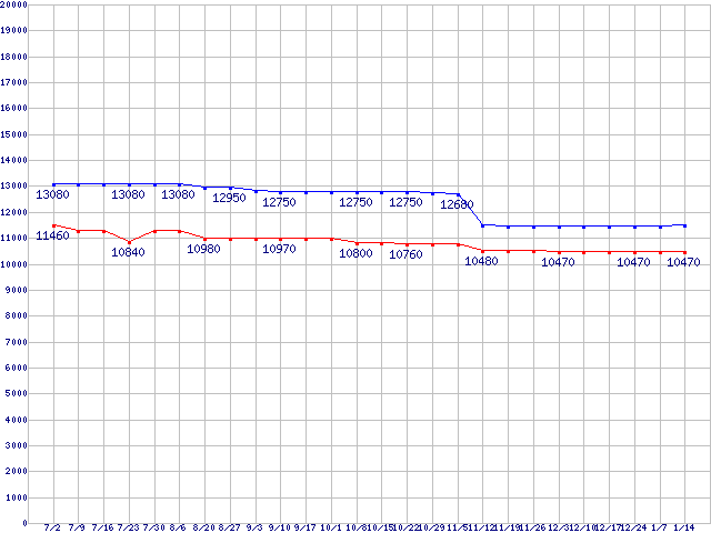 | LGA775 (FSB 1066MHz,Dual Core,TDP 65W)の最安値推移 |
