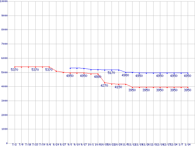 | LGA775 (FSB 800MHz,L2 1MB,Dual Core,TDP 65W)の最安値推移 |