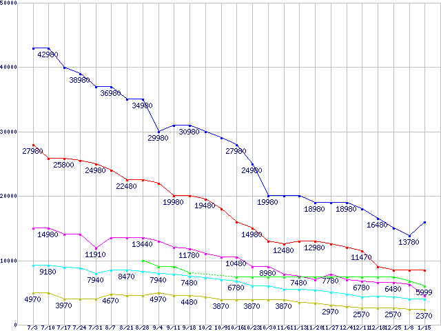 | ※製品名をクリックすると個別のグラフを表示します ※点線部は販売店が確認できなかった、または調査データがないことを示します | |