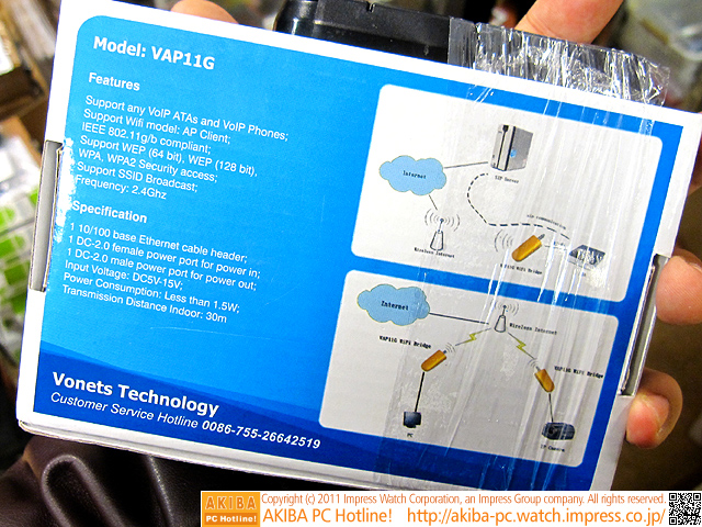 AKIBA PC Hotline! 2011年1月15日号今週見つけた新製品:ネットワーク関連機器 [拡大画像]Vonets Technology WiFi Bridge(HY-WFBDG)前の画像←[記事に戻る]