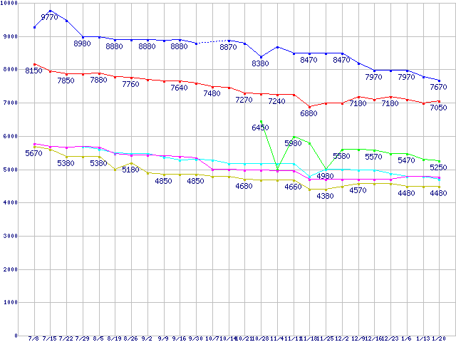 | ※製品名をクリックすると個別のグラフを表示します ※点線部は販売店が確認できなかった、または調査データがないことを示します | |