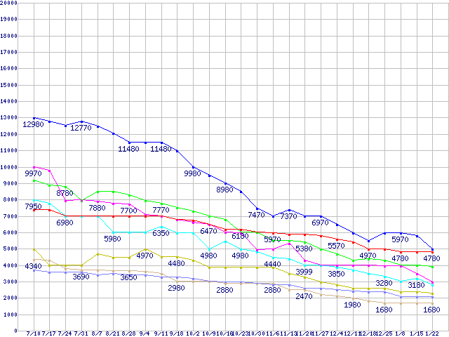 | ※製品名をクリックすると個別のグラフを表示します ※点線部は販売店が確認できなかった、または調査データがないことを示します | |