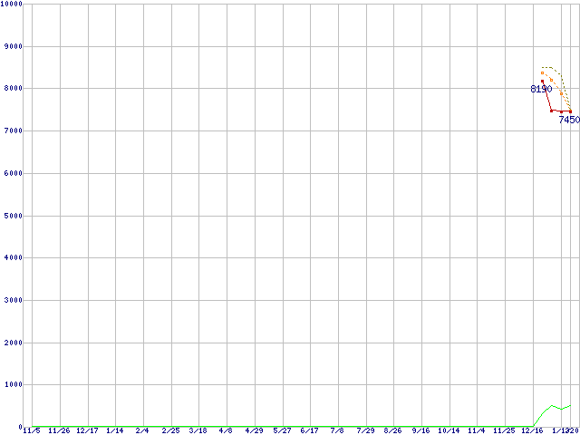 ST1500DL003 (1.5TB,64MB)の価格推移↑前グラフ↓次グラフ(2009年11月5日〜2011年1月20日)※このグラフは過去のデータも税率5%相当に調整した税込み相当額のグラフです。●関連グラフHDD/SSD主要製品の最安値推移HDD/SSD主要製品(最安値1万円未満)の最安値推移HDD 1.5TB〜2TB未満の最安値推移Barracuda Green (5900rpm,6Gbps)の最安値推移●凡例最安値(点線部は販売店未確認または未調査)平均値最高値ショップ数