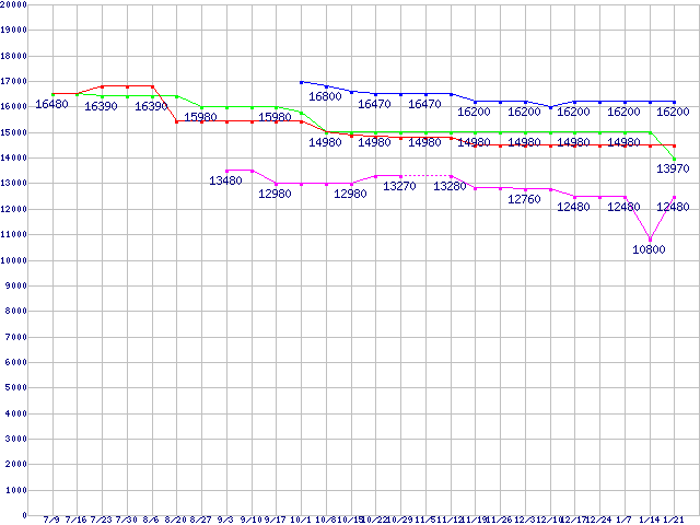 | Socket AM3 (HyperTransport 3.0,Quad Core)の最安値推移 |