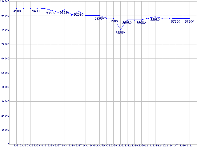 | LGA1366 (QPI 6.4GT/s,L3キャッシュ12MB,6Core,Hyper-Threading,TDP 130W)の最安値推移 |