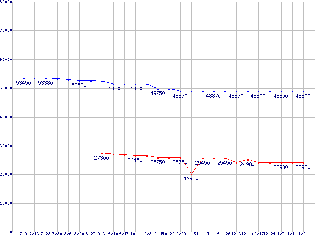| LGA1366 (QPI 4.8GT/s,L3キャッシュ8MB,Quad Core,Hyper-Threading,TDP 130W)の最安値推移 |