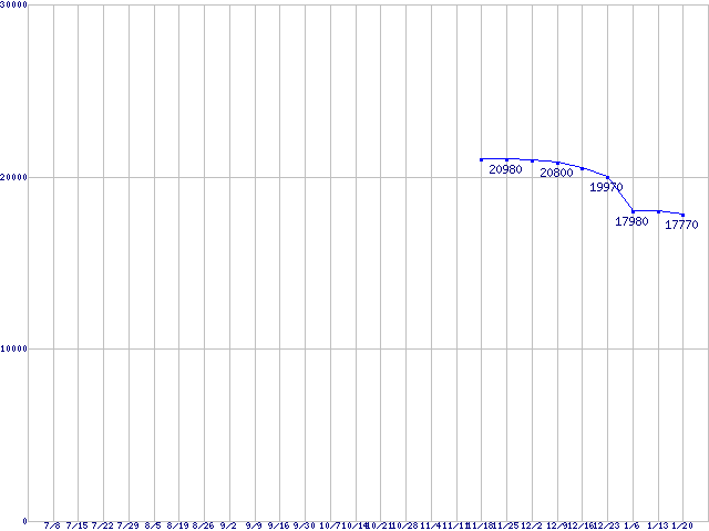 | Deskstar 7K3000 (7200rpm,6Gb/s)の最安値推移 |