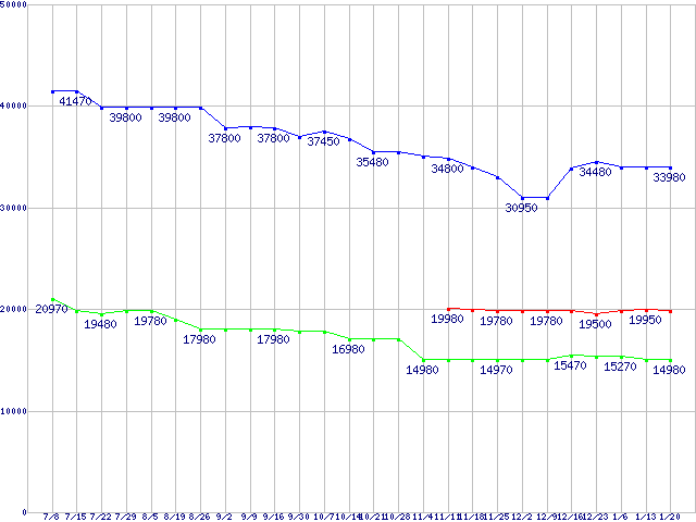 | X25-M Mainstream SATA SSD (SSD,3Gbps,2.5インチ)の最安値推移 |