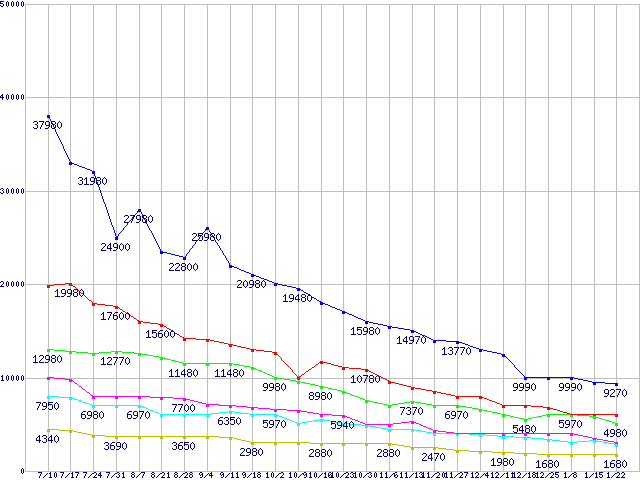 | ※製品名をクリックすると個別のグラフを表示します ※点線部は販売店が確認できなかった、または調査データがないことを示します | |