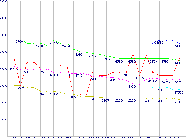 | ※製品名をクリックすると個別のグラフを表示します ※点線部は販売店が確認できなかった、または調査データがないことを示します | |