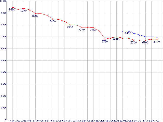 | ※製品名をクリックすると個別のグラフを表示します ※点線部は販売店が確認できなかった、または調査データがないことを示します |