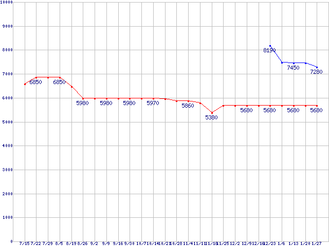 | ※製品名をクリックすると個別のグラフを表示します ※点線部は販売店が確認できなかった、または調査データがないことを示します |