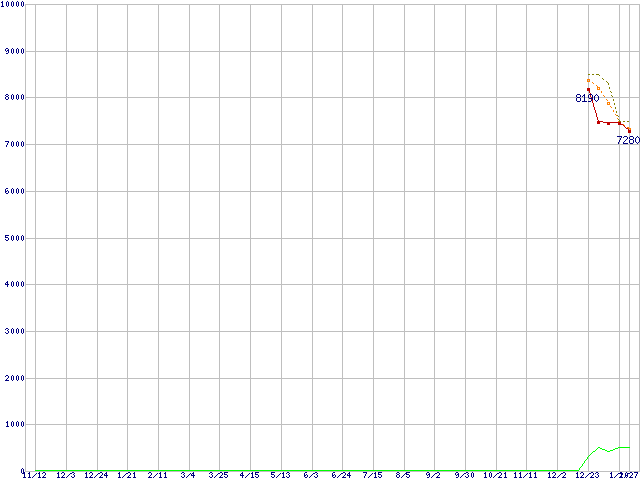 ST1500DL003 (1.5TB,64MB)の価格推移↑前グラフ↓次グラフ(2009年11月12日〜2011年1月27日)※このグラフは過去のデータも税率5%相当に調整した税込み相当額のグラフです。●関連グラフHDD/SSD主要製品の最安値推移HDD/SSD主要製品(最安値1万円未満)の最安値推移HDD 1.5TB〜2TB未満の最安値推移Barracuda Green (5900rpm,6Gbps)の最安値推移●凡例最安値(点線部は販売店未確認または未調査)平均値最高値ショップ数