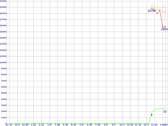 Phenom II X6 1065T (2.9GHz,L2 512KB×6,L3 6MB,TDP 95W)の価格推移↑前グラフ↓次グラフ(2009年11月13日〜2011年1月28日)※このグラフは過去のデータも税率5%相当に調整した税込み相当額のグラフです。●関連グラフCPU主要製品の最安値推移CPU主要製品(最安値1万円〜2万円未満)の最安値推移AMD系CPUの最安値推移Socket AM3 (HyperTransport 3.0,6Core)の最安値推移●凡例最安値(点線部は販売店未確認または未調査)平均値最高値ショップ数