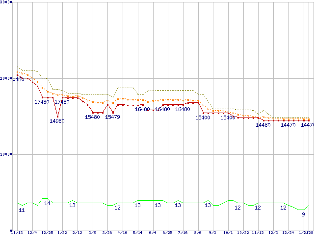 | Phenom II X4 965 Black Edition (3.4GHz,L2 512KB×4,L3 6MB,TDP 125W)の価格推移 |