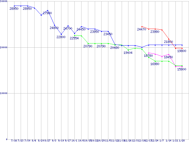 | Socket AM3 (HyperTransport 3.0,6Core)の最安値推移 |